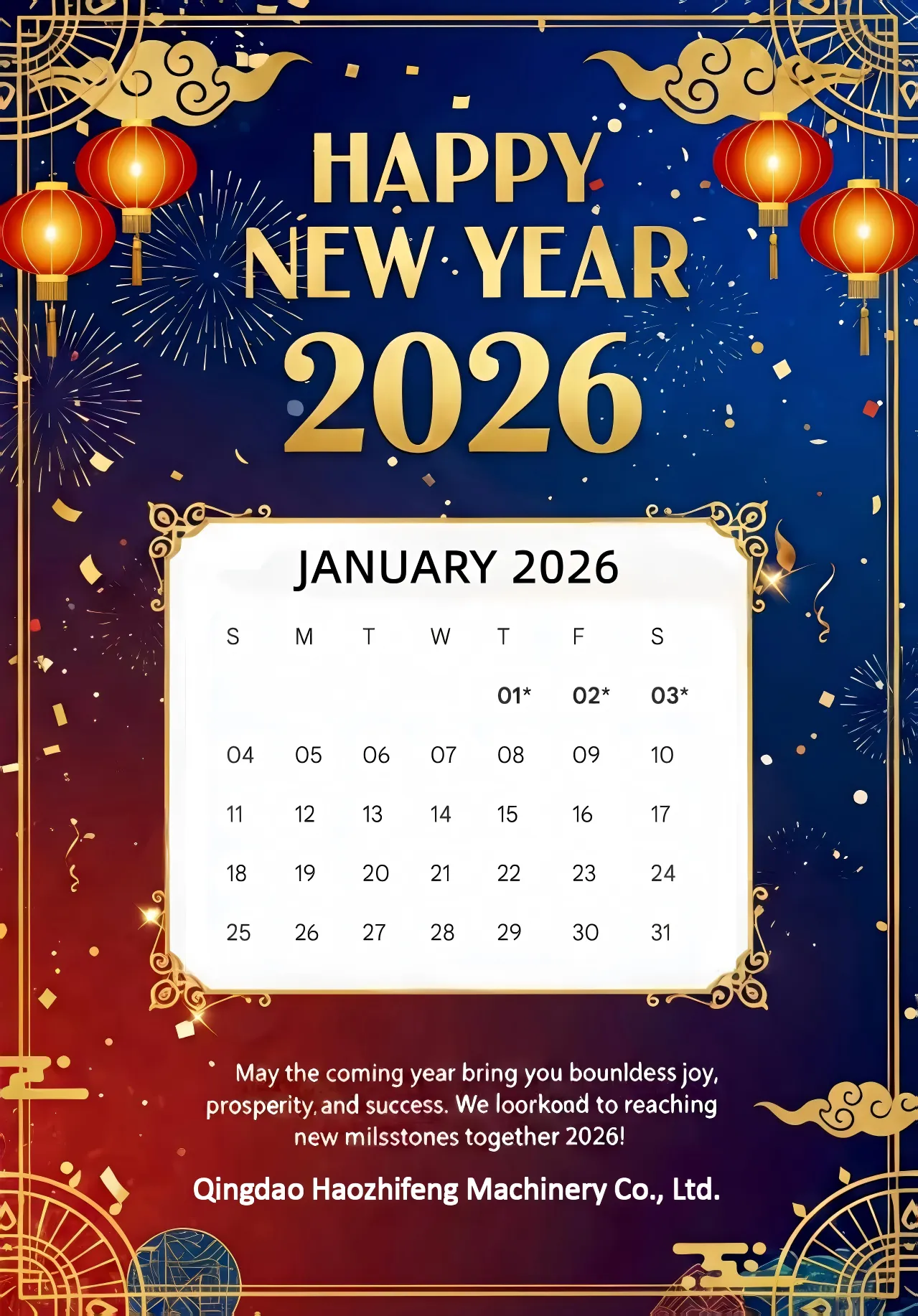 S veselom atmosferom Nove godine koja se približava, uskoro ćemo ući u 2026. Ovom posebnom prigodom, cijeli tim Haozhifenga, vrlo profesionalan tim inženjera za analizu crteža i razvoj. Haozhifeng vam želi od srca zahvaliti na vašem društvu i podršci na putu. Kako bi svi uživali u ugodnom odmoru i osigurali nesmetan napredak daljnjeg poslovanja, sa zadovoljstvom s vama dijelimo naš aranžman za novogodišnji odmor.